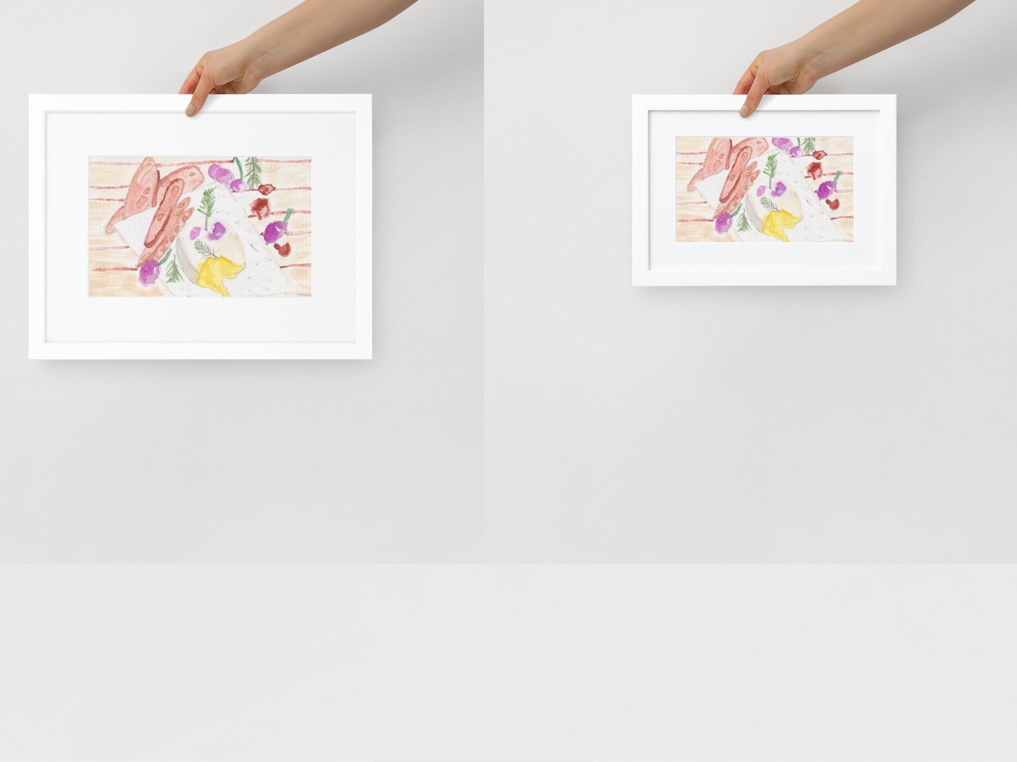 Watercolor Bread Cheese & Olive Platter framed Print - Gourmet Charcuterie Still Life Kitchen Wall A