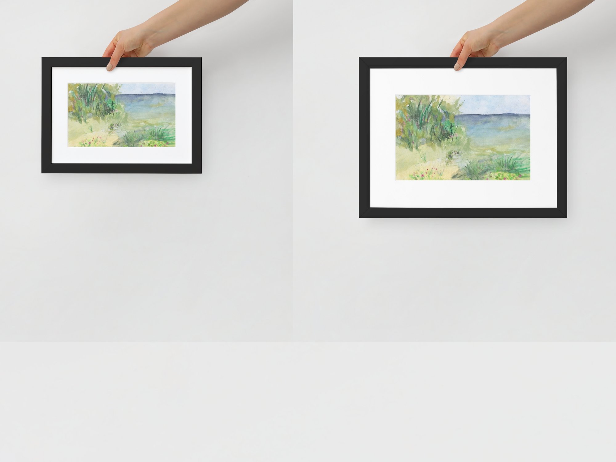 Watercolor Seaside Landscape Framed Print - Serene Coastal Beach Ocean Scene Wall Art